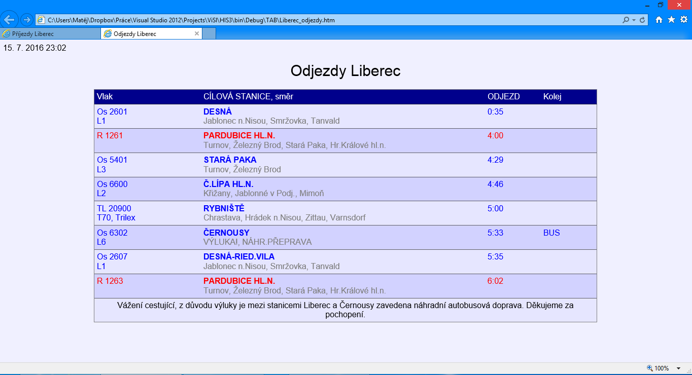 - Informování o výlukách, odklonech, zrušeních
